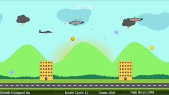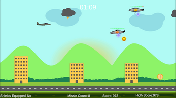 | Star Collectable: Once every 60 seconds. Coin Collectable: Once every 5 seconds but gradually decreases over time. Missile Power Up: Once every 6 seconds. Shield Power Up: Once every 24 seconds. | Bronze UFO: Within the range of 2.0 to 3.0 seconds. Silver UFO: Within the range of 12.0 to 18.0 seconds. Gold UFO: Within the range of 22.0 to 32.0 seconds. Plasma Shot: Every 2 seconds. | Buildings: Every 3 seconds but after 60 seconds it becomes 2. Storm Clouds: Starts spawning after 30 seconds have passed,hen every 10 seconds after that. |